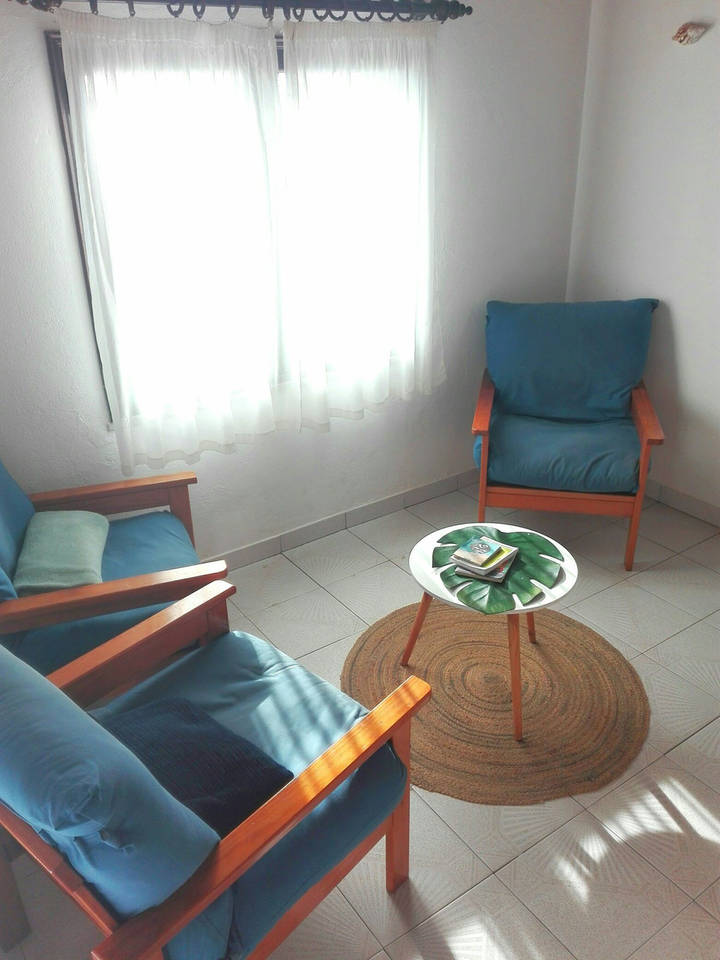 1 Casa-de-banho completa ; 1 Quarto com cama casal e outro com 2 camas single; Sala e cozinha kitchenette; boas áreas interiores e terraço exterior privativo